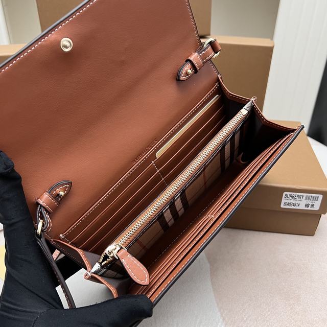 Vintage 格紋拼皮革錢夾(含可拆式背帶)➰【B‧家】原版品質~~本品可作為小型手袋單獨使用,或作為錢夾收置於日常手袋內。專櫃品質、做工精細實物拍攝,80492481棕色,尺寸20.5cm*12cm*3cm號碼a031210