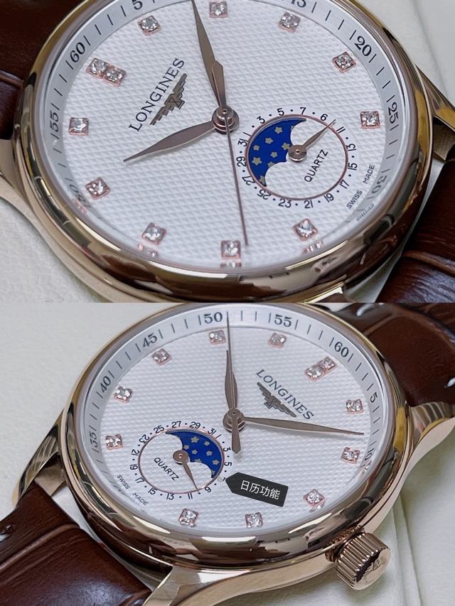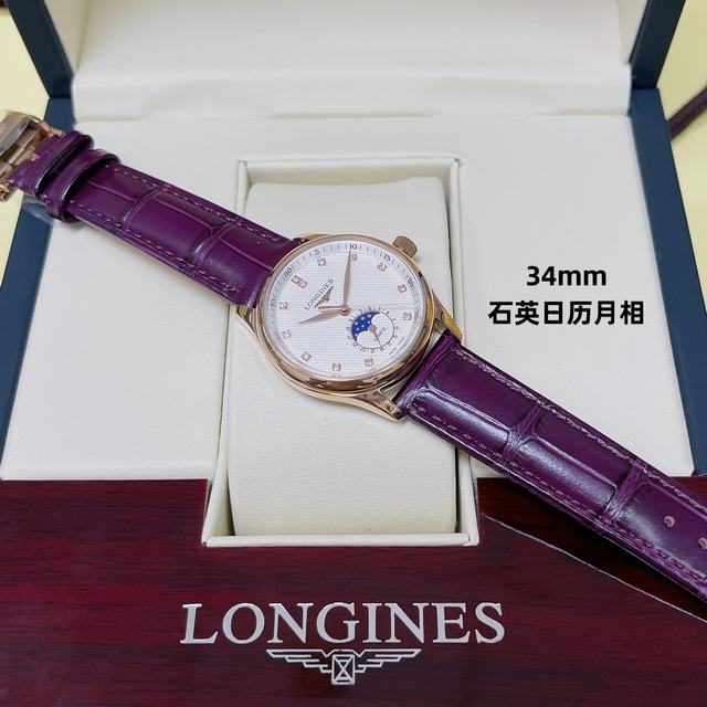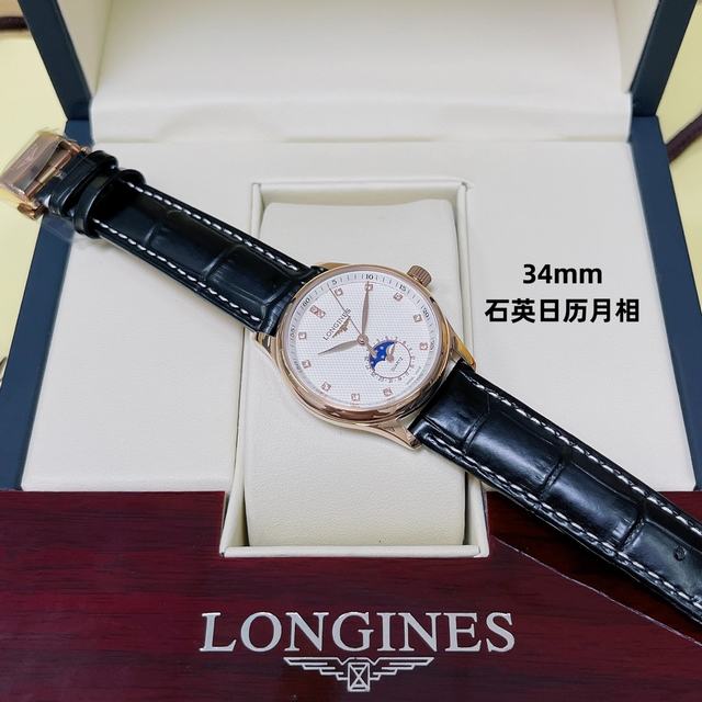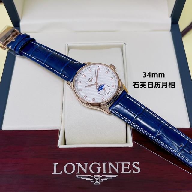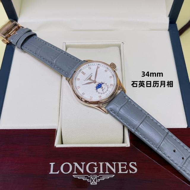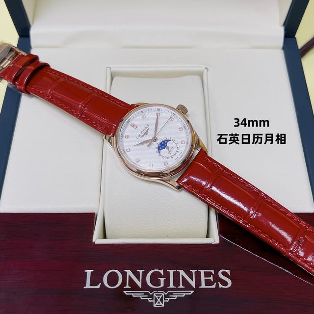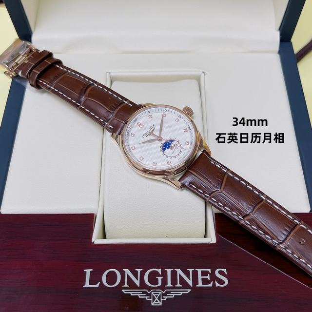 【趙麗穎同款】Longines浪琴 名匠系列女士腕表。鋼帶皮帶統一價格。550 金➕20。全新浪琴名匠月相腕表系列。 詮釋女性高貴典雅。精鋼表殼直徑:34毫米尺寸。官方一致6字位月相1-31日期顯示功能。進口石英機芯。三碼合一。采用進口頭層牛皮、原裝蝴蝶扣。珍珠母貝表盤在女表中是運用較多的元素,浪琴為其搭配了12顆鉆石時標,將女性魅力發揮到極致。盤面6點鐘位置的小表盤顯示月相和日期,兼顧實用性和浪漫感,精巧別致。字表盤掃描打版,顏色、「麥粒」格紋深淺、內影字體大小粗細與正品完全一致。 三碼合一認準編號67586628 號碼063550