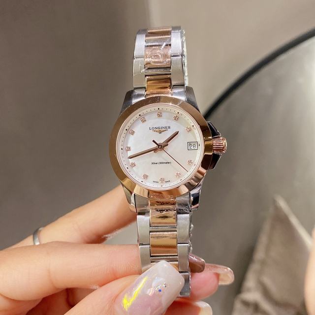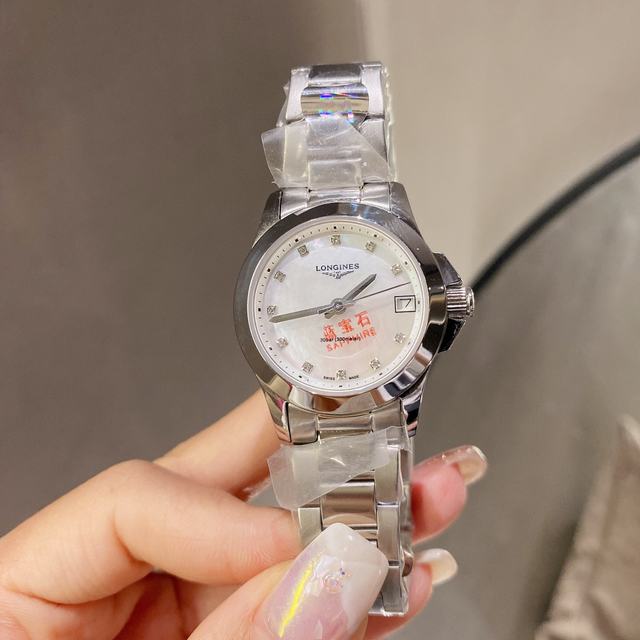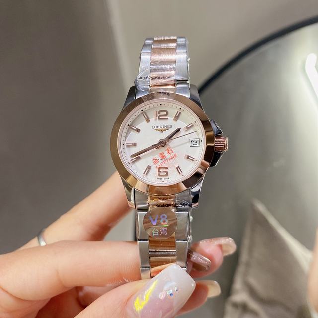白 金 390v8 爆款Longines浪琴 康柏系列石英表手表女簡約氣質 !腕表底蓋-吊牌-保卡 三碼合一 1:1品質 超高性價比、月相正品一致。 機芯:進口石英機芯 走時準確玻璃:抗磨損合成雙蔔藍寶石(數據同步正品)表殼:316精鋼圓形、3件套表殼字面:羅馬面、A級深海珍珠貝殼 表帶:精鋼表鏈搭配原裝三折式表扣。 進口小牛皮表帶表殼尺寸:寬度 29.5 mm號碼032390