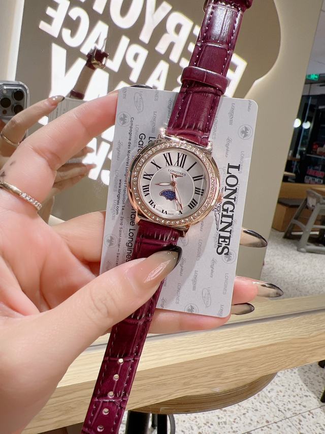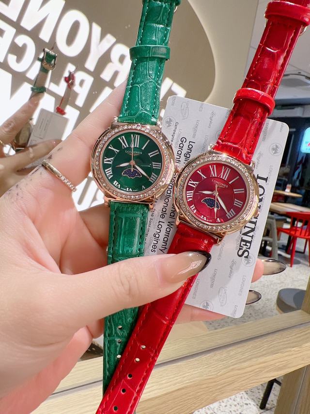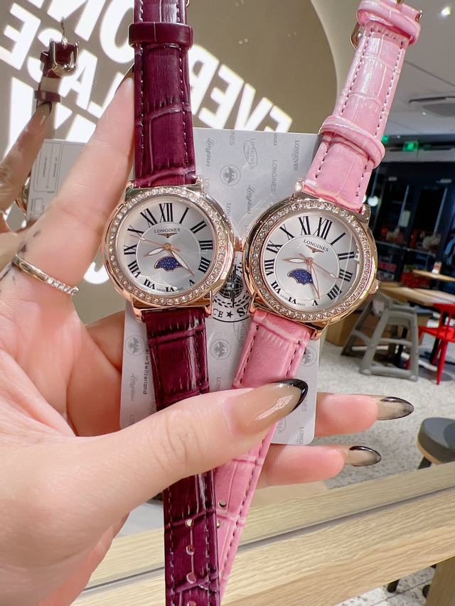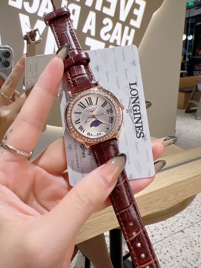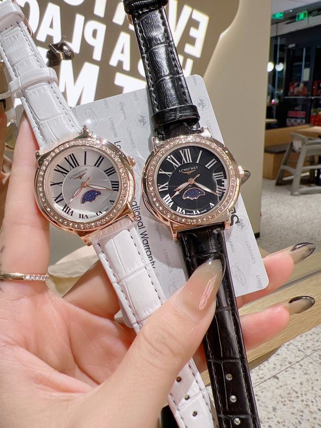 包郵 藍光鍍膜玻璃鉆圈 浪琴—【LONGINES】林誌玲代言 浪琴心月系列 原裝進口石英機芯 尺寸30.5mm,走時精準耐久 雙蔔藍寶石水晶玻璃 牛皮表帶頂尖工藝打造 1:1還原正品細節 圓潤的曲線式設計佩戴優雅大方 波浪型表帶動感貼手 光澤流盼 每一粒表鏈都精心打磨 力求完美 百看不膩的經典款式 號碼xr07220