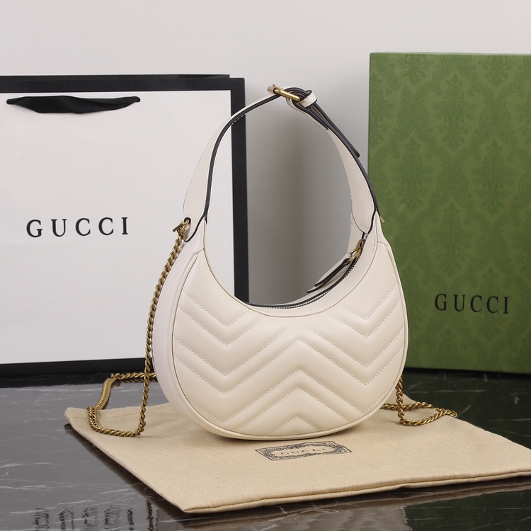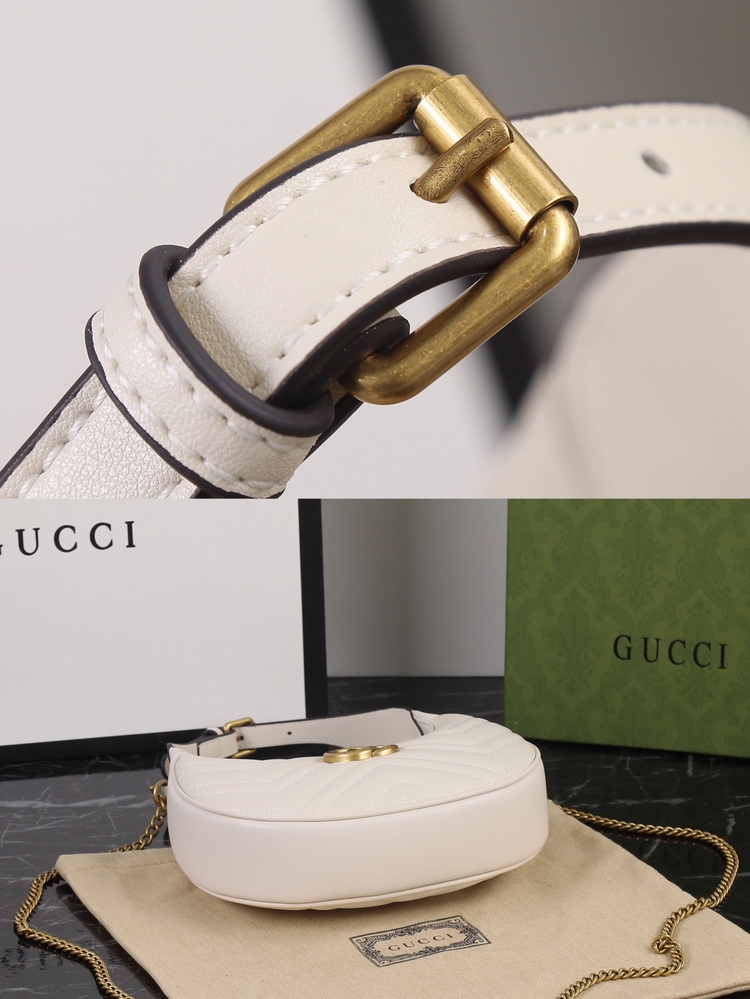 Gucci最新半月腋下包,采用經典的繡線,散發出濃郁的復古格調,近兩年腋下包火到不行,還配有鏈條長肩帶可斜挎~全套原版五金。型號9059,