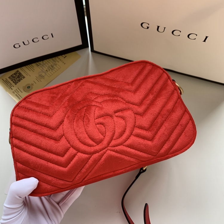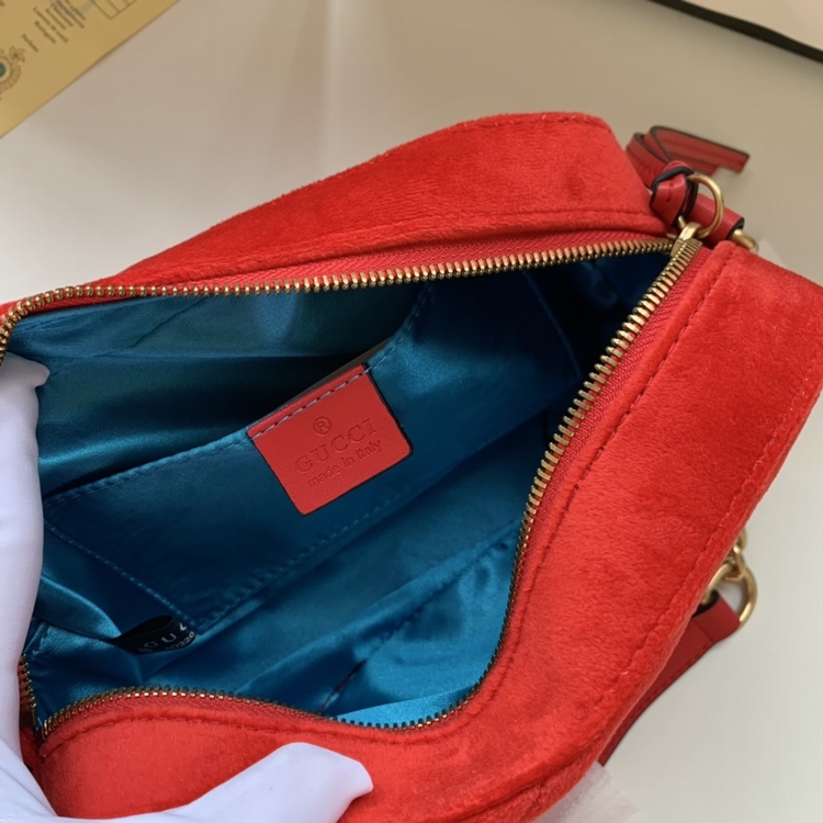 GG marmont 系列相機包。天鵝絨面料與古銅色五金的碰撞,配與絲綢質感內裏,註定是屬於秋冬的壹抹暖意。高級質感且低調
