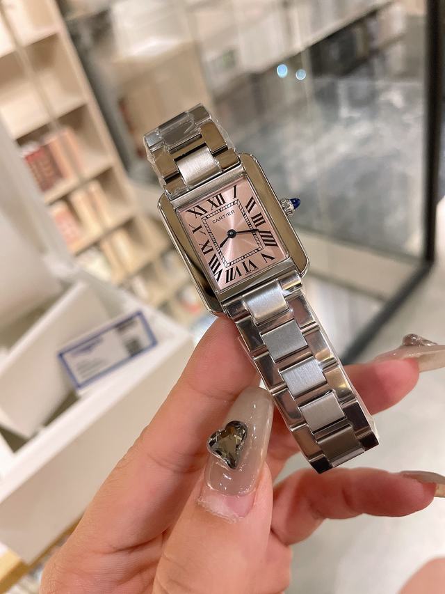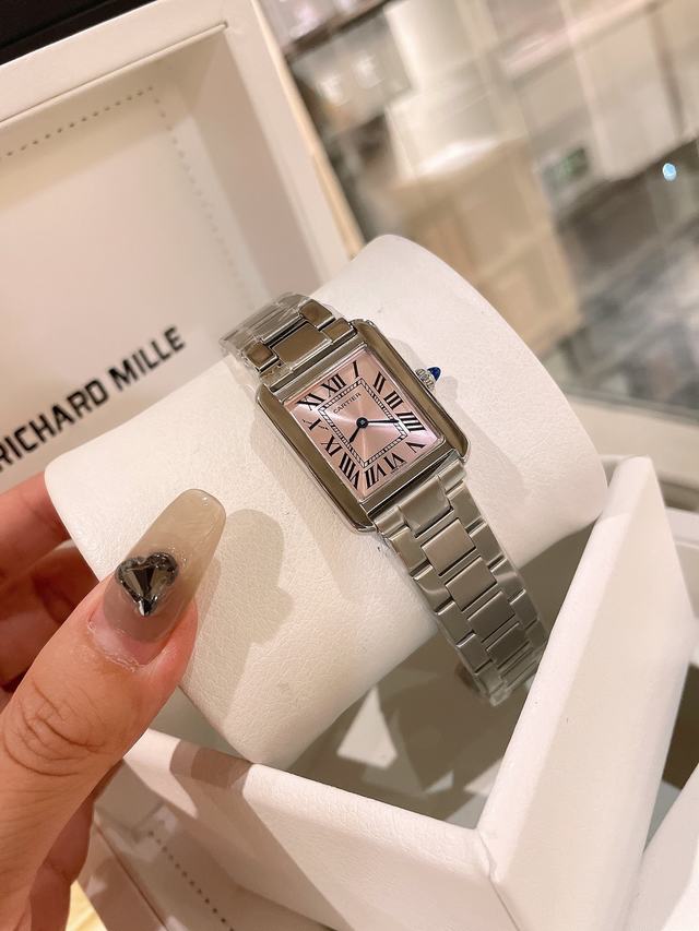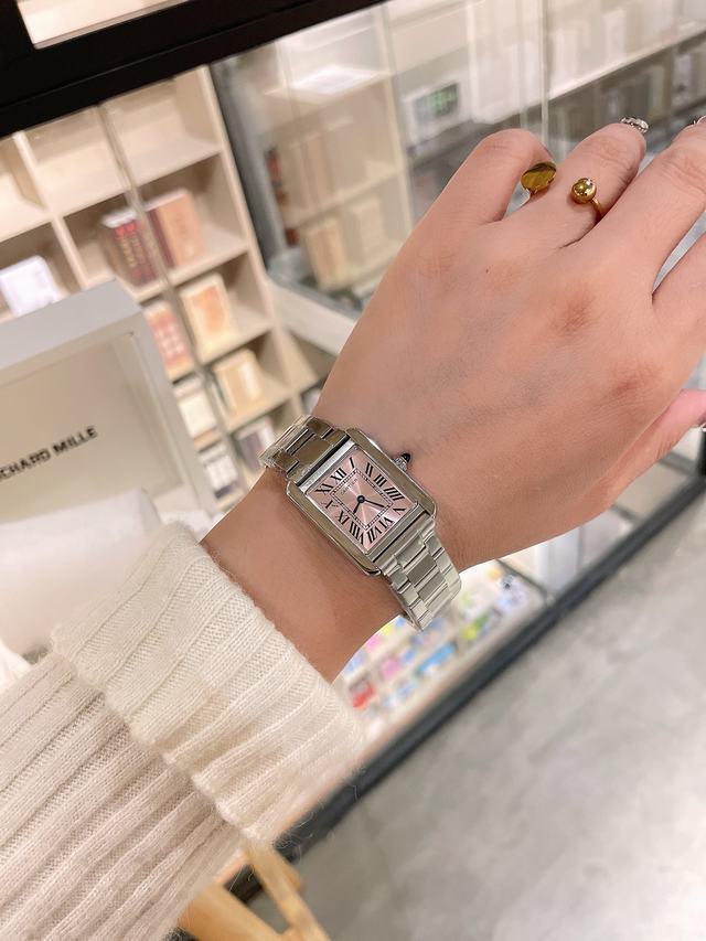 卡地亚坦克系列复古腕表 TANK 坦克系列!字面采用立体凸出,316L精钢版,情侣对表,进口瑞士机芯,中号27MMX34MM,小号尺寸24MMX31MM。细节打磨,指针颜色,把头弧度,原厂娟丝皮带,精钢原装钢带、配贴码,颜色分配:白壳 黄金壳 玫瑰金壳 表带颜色齐全!进口瑞士机芯 蓝宝