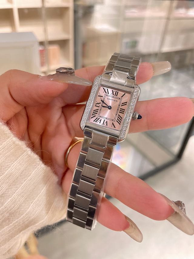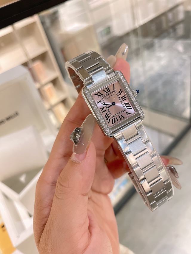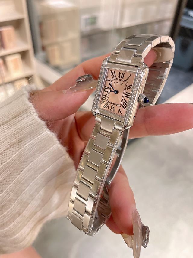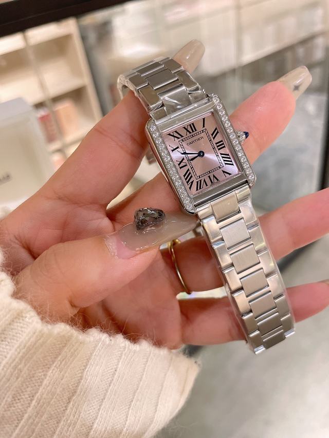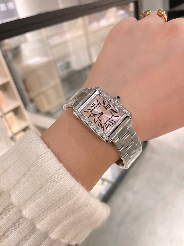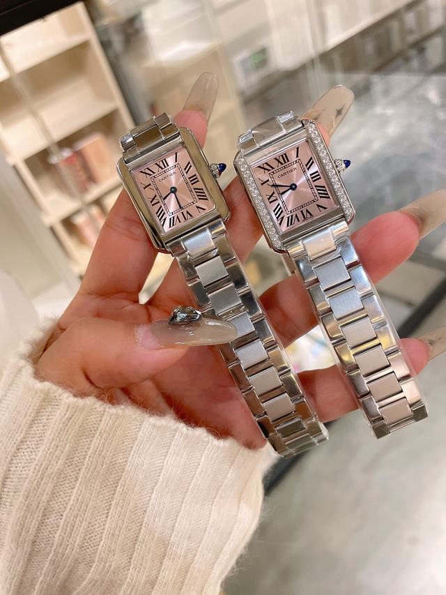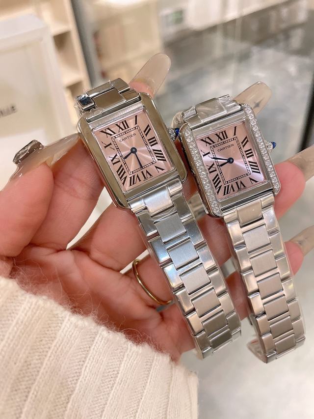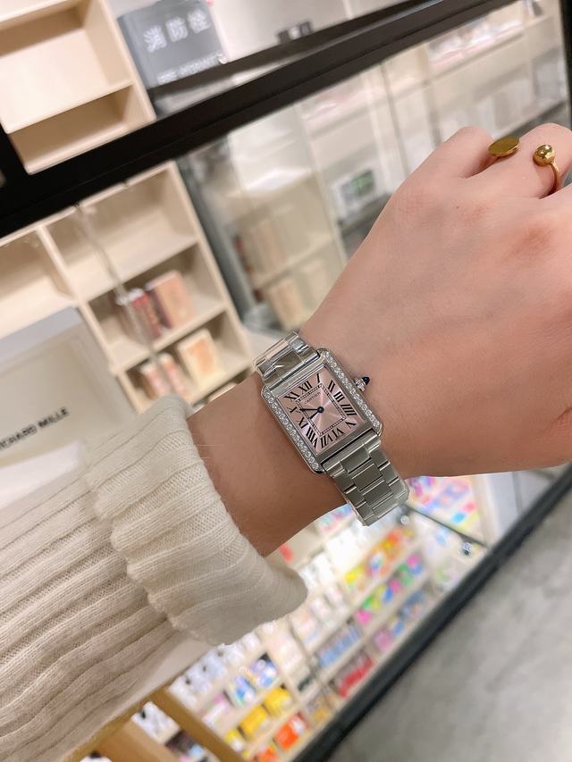 卡地亚坦克系列复古腕表 TANK 坦克系列!字面采用立体凸出,316L精钢版,情侣对表,进口瑞士机芯,中号27MMX34MM,小号尺寸24MMX31MM。细节打磨,指针颜色,把头弧度,原厂娟丝皮带,精钢原装钢带、配贴码,颜色分配:白壳 黄金壳 玫瑰金壳 表带颜色齐全!进口瑞士机芯 蓝宝