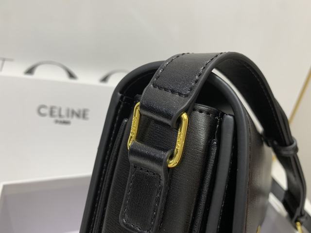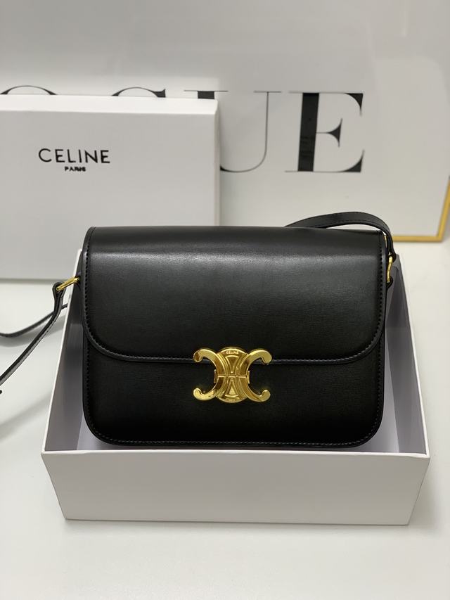 配盒子 Celine 手搓纹小牛皮凯旋门TRIOMPHE  小牛皮,金色金属件,小羊皮衬里黄铜锁扣可肩背或斜挎内侧拉链口袋和扁平口袋,可调节皮革肩带