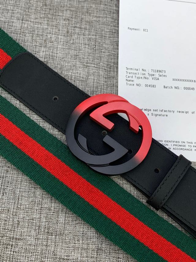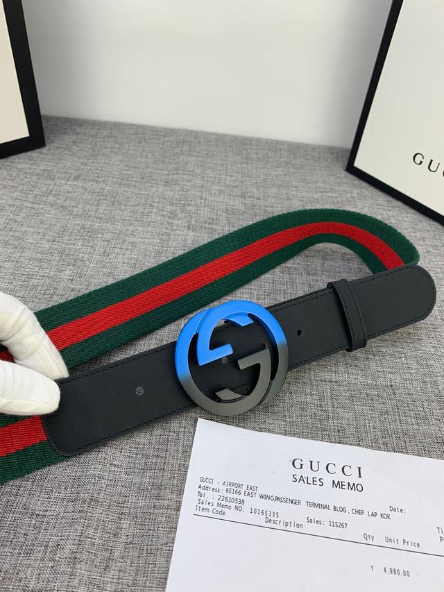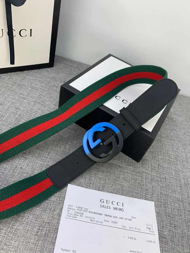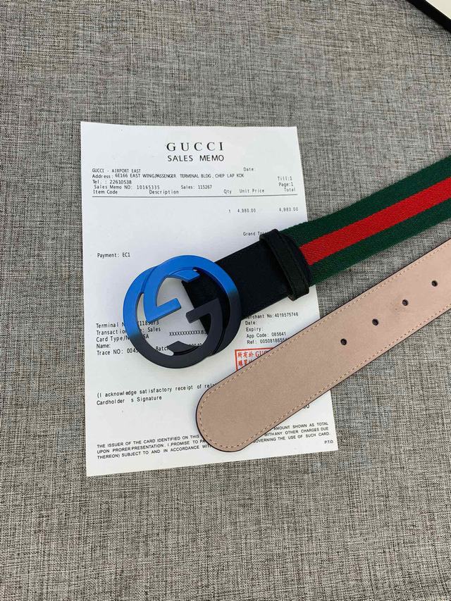 配全套包装 G U C C I 经典帆布织带腰带/头尾用采头层小皮牛的点缀 配以织纹质皮滚边和双G带扣。夏季男百女搭款 上身效超果级棒   号码b051250