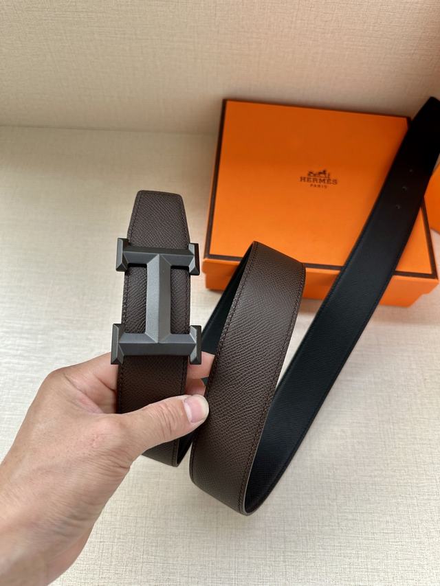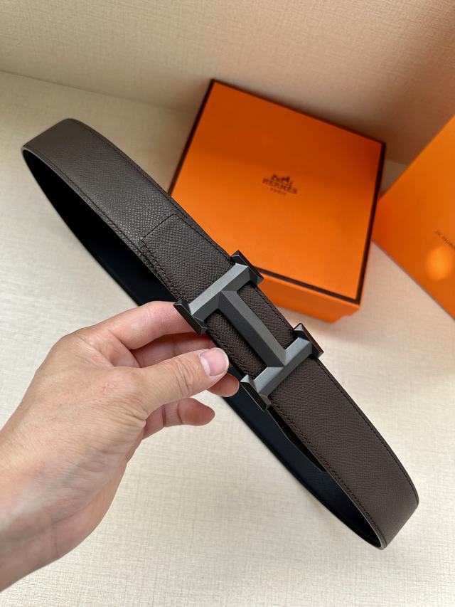 配全套包装 Hermes.爱马仕 男款3.8cm精品沙扣 原版皮双面手掌纹理配搭 平可双面使用 时尚休闲百搭款 号码b051250