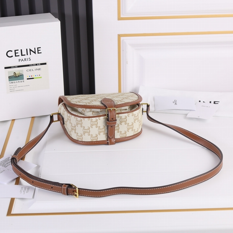 Celine  春夏新品𝐅𝐨𝐥𝐜𝐨花纹 涂层帆布马鞍包 延续凯旋门 复古斜挎  耐看经典印花一点都不老套。