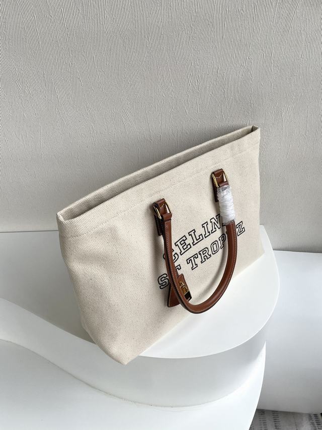 🔅CABAS CELINE 横款印花帆布和小牛皮手袋,46%棉,54%小牛皮,100%棉衬里,肩背或手提,内侧拉链口袋,实力追捧此包:超炸街💥CABAS帆布最新系列风靡toto#笔记本毫无压力  百搭短途旅行购物袋