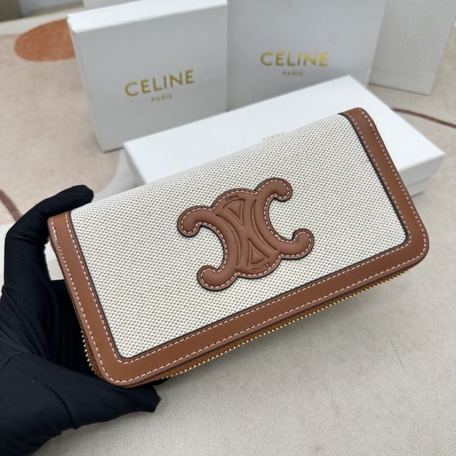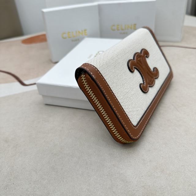 TRIOMPHE CUIR大拉链钱夹,织物和小牛皮天然/棕褐色织物,小牛皮衬里饰边拉链封口两个扣板隔层十二个信用卡槽一个拉链口袋两个扁平口袋颜色:白色 黑色 棕色。7 X 4 X 0英寸(19 X 10 X 1厘米)编号:10543