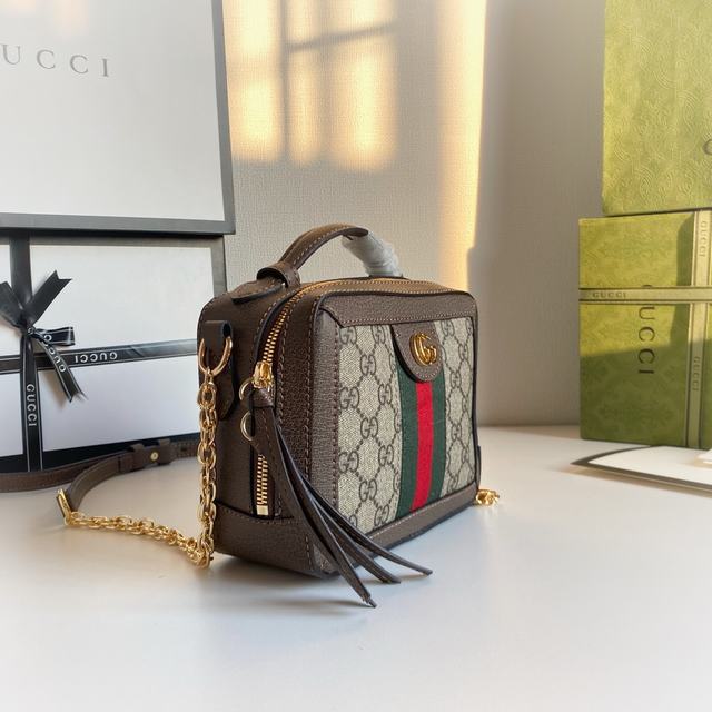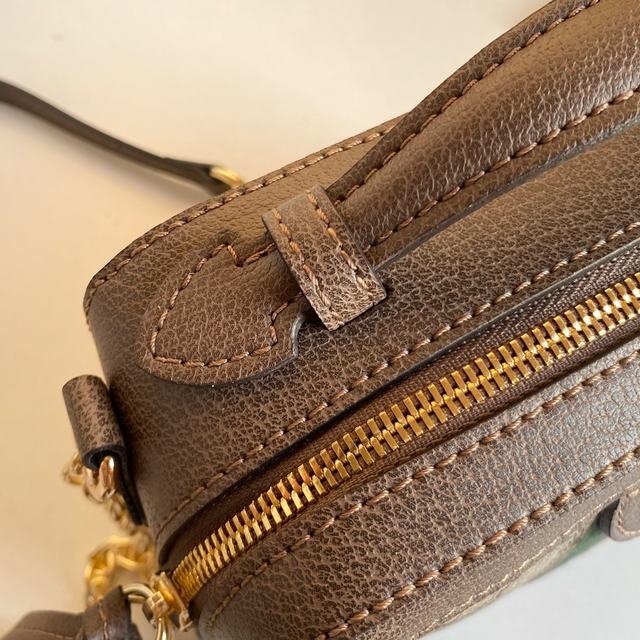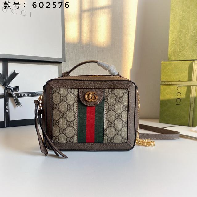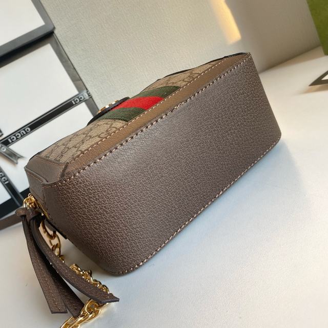 迷你 款号:602576啡棕 尺寸:18.5-15-7.5cm 2020早春 Ophidia迷肩你背装包饰经典红条绿纹织带标和志的性金调色双G配件,皮提革手金与属肩链带设计搭配,实多现种型造选择,精致百搭。 号码002300