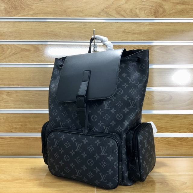 M45538 44658黑花 全新 Trio 双肩包融合路易威登经典 Monogram 帆布与 Virgil Abloh 笔下的创意元素,巧妙衔接品牌传承与摩登格调。柔软材质成就舒适背携体验,磁扣开合和多口袋设计更添便捷。size 45x33x22cm 号码082420