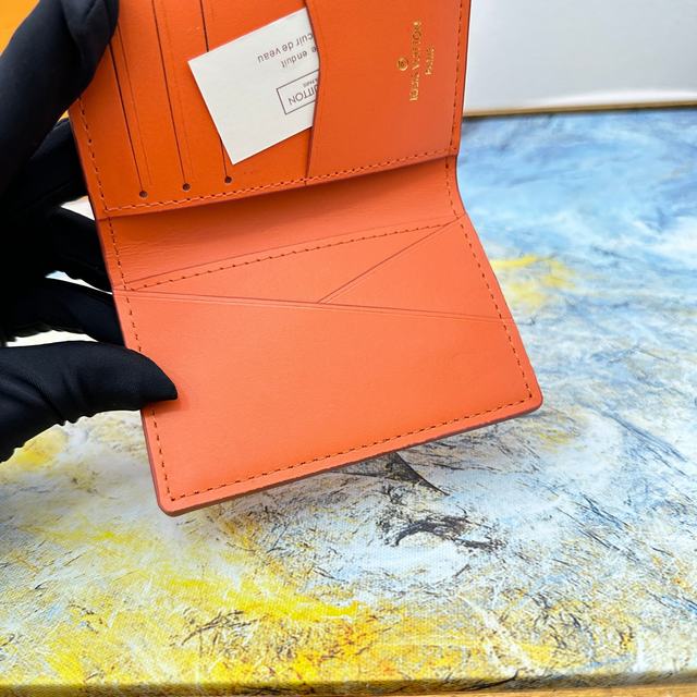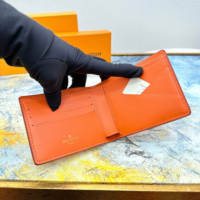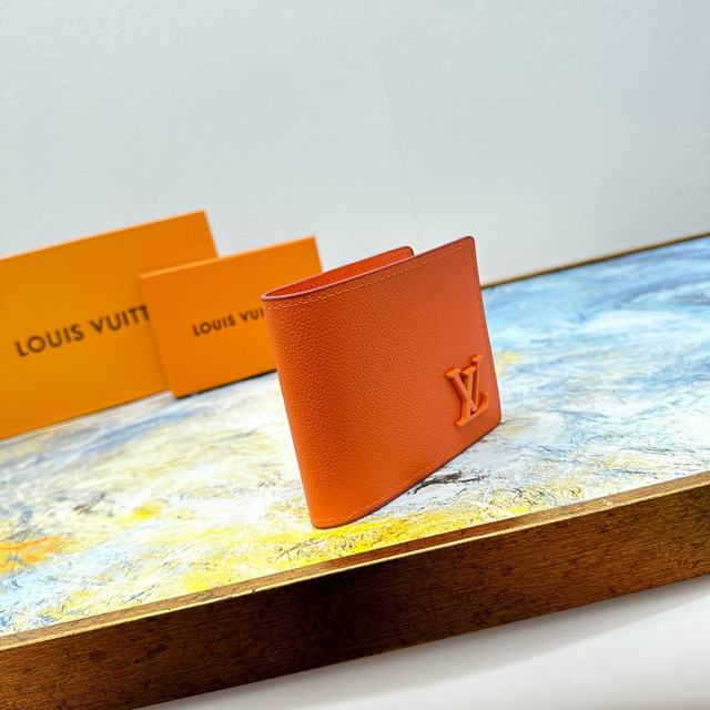 Multiple 钱夹M81026采用经过特殊处理的 Aerogram 牛皮革,呈现旧式航空信笺一般的柔软质感,彰显品牌对旅行艺术的无限热忱,点缀金属 LV 标识。既是日常功能之选,亦可成就馈赠佳礼。11.5 x 9 x 1.5 厘米   号码011170