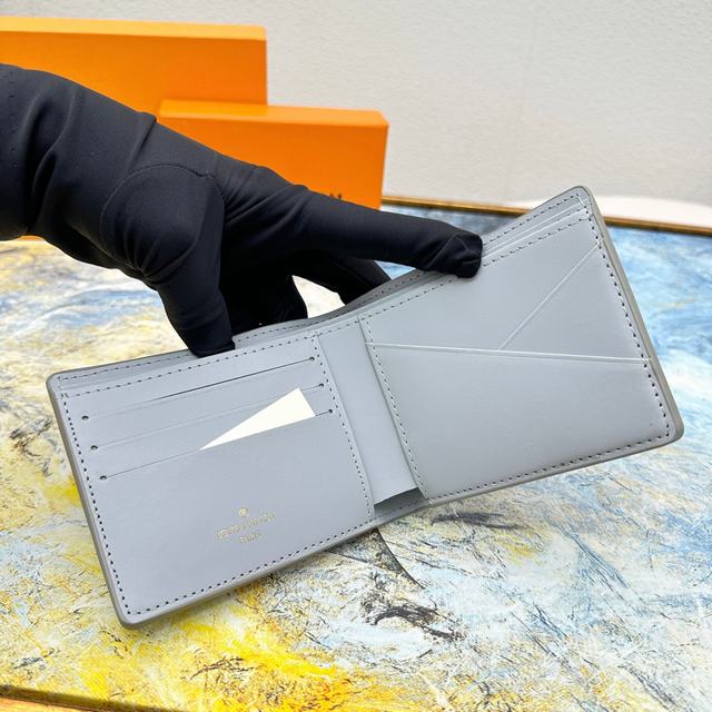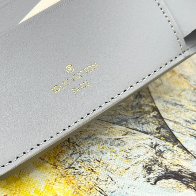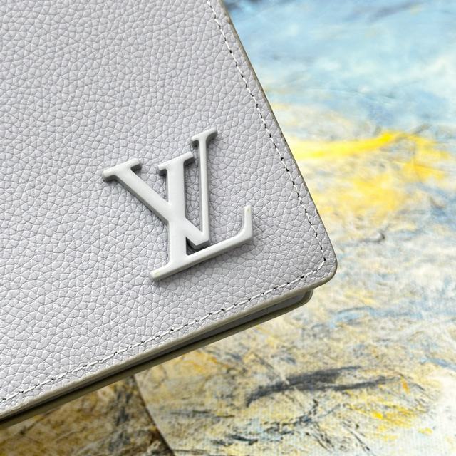 Multiple 钱夹M81026采用经过特殊处理的 Aerogram 牛皮革,呈现旧式航空信笺一般的柔软质感,彰显品牌对旅行艺术的无限热忱,点缀金属 LV 标识。既是日常功能之选,亦可成就馈赠佳礼。11.5 x 9 x 1.5 厘米 号码011170