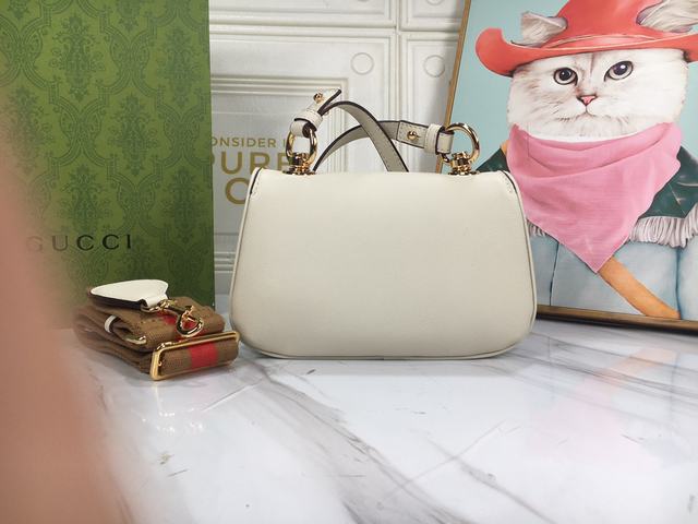原厂皮全新时装系列精选品牌典藏元素以几何造型焕新演绎互扣式双G标识呈现多款别致单品金色调配件为这款单品增添一抹典雅的复古气息尽显经典隽永的设计风范一如这场时装秀的举办地。这款白色皮革迷你手袋搭配两根可更换的肩带同色调皮革或条纹织带助你演绎不同风格和造型尺寸:22/13/5.5cm,号码ys552355