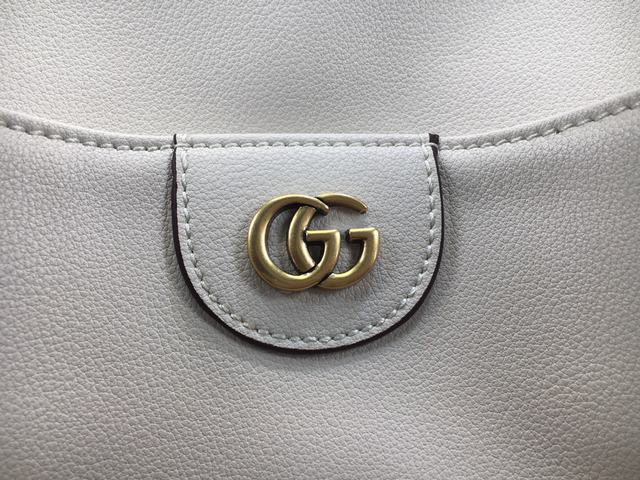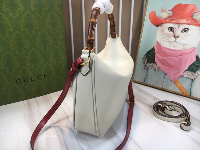 這款中號肩背包巧妙糅合品牌頗具辨識度的兩大元素——竹節提手和雙G配件,賦予整個造型以獨特魅力。這款配飾以白色皮革匠心打造,配以紅色撞色皮革肩帶,令整個設計更加亮眼。