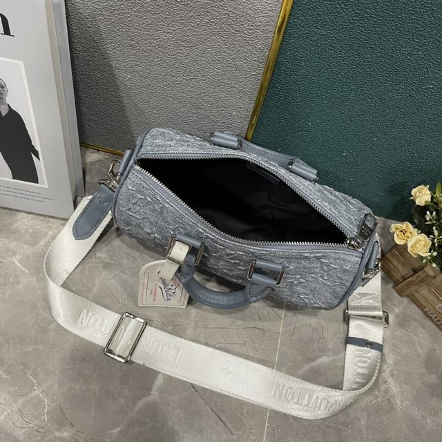 新款 M22762 牛仔壓紋本款 Keepall Bandoulière 25
