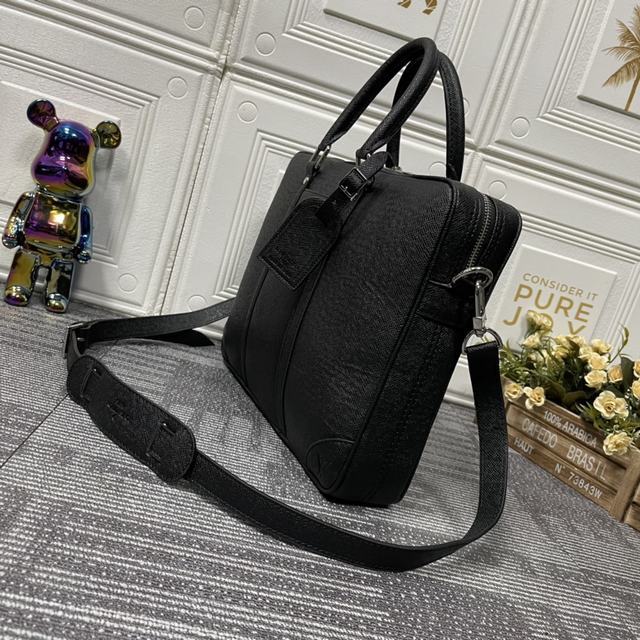 M30925  黑花、老花、黑格、壓格、十字紋 男士公文包系列 本款 Voyage 小號公文包 取材 Damier Graphite 塗層帆布,搭配皮革側帶、加固包角、頂部手柄和名牌。外袋便於存放智能手機,加墊內隔層可容納 13 寸筆記本電腦,可拆卸並調節的肩帶實現舒適肩背。詳細特征36.5 x 27.5 x 6 厘米