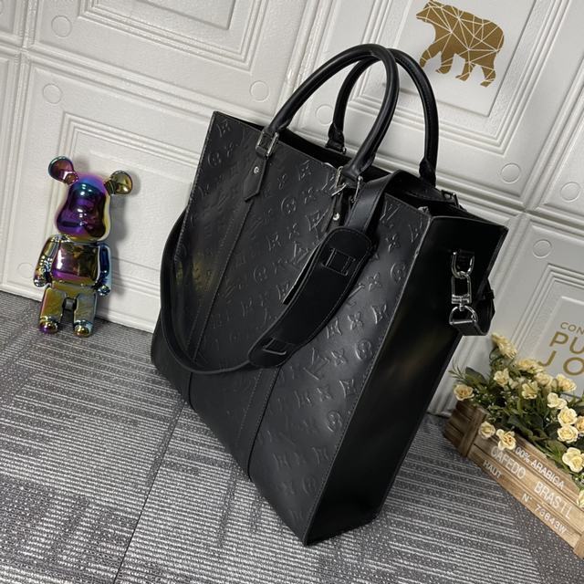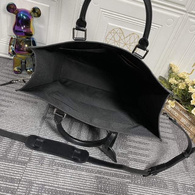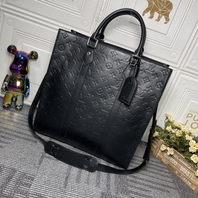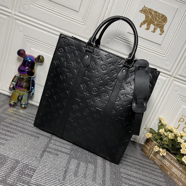 M46452 黑花、老花、壓花 本款 M46452  Sac Plat 手袋以 Monogram Eclipse 塗層帆布塑造纖長構型,搭配寬幅飾帶,在商務場合彰顯潮流風範。加墊內裏設有口袋,D 形環便於固定可拆卸肩帶。尺寸:36.5*38*9   號碼062380