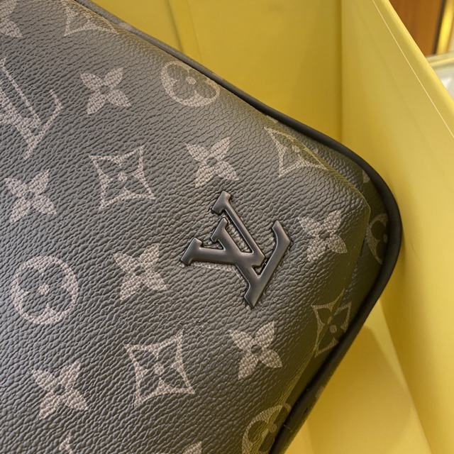 單肩包取材 Damier Graphite 帆布,為正面外袋點綴路易威登巴黎標識皮革貼飾。