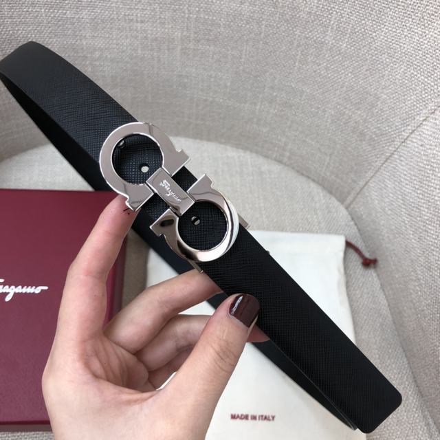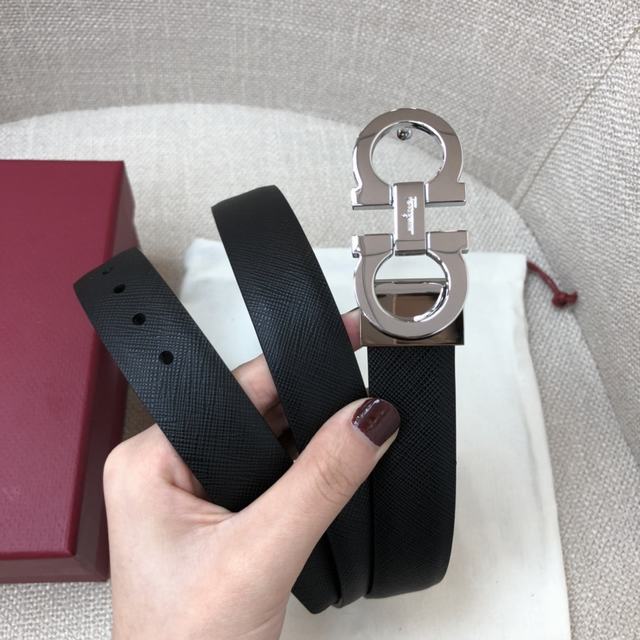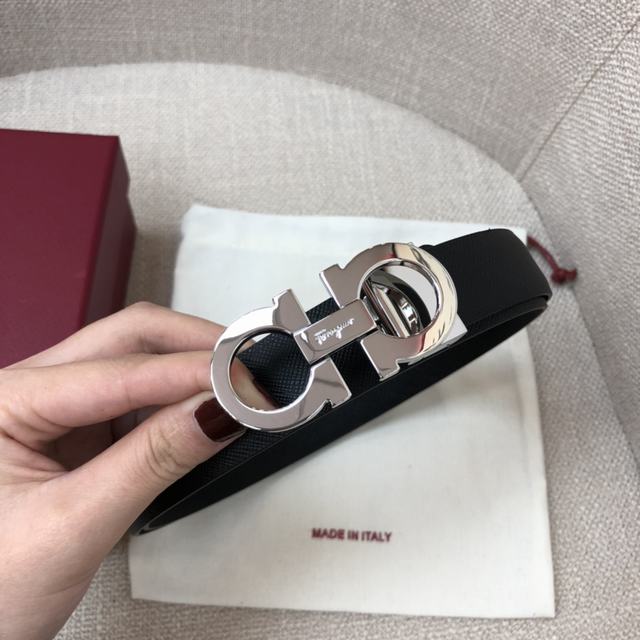 配全套包装  Ferragamo 25mm金属Gancio双扣,女士双面牛皮,质感十足 独特复古风格 时髦中带着随性和酷感   號碼b041240