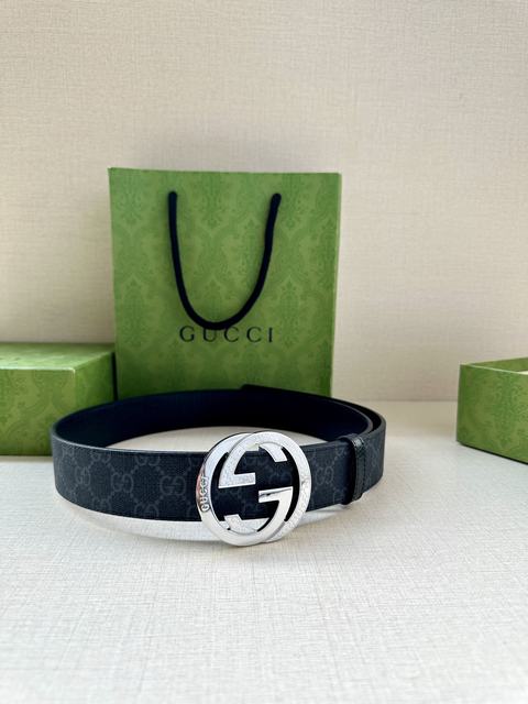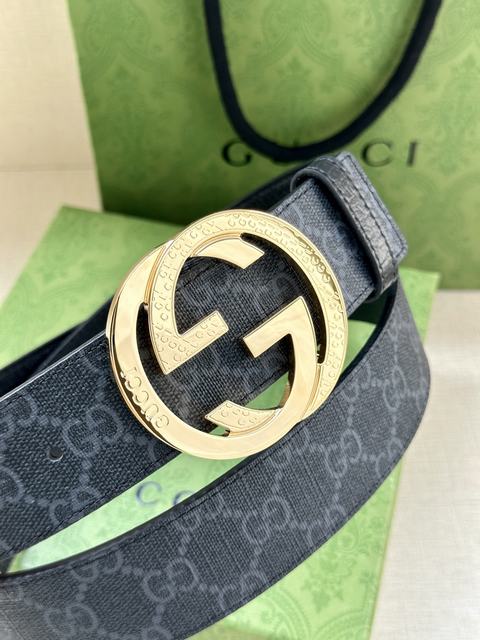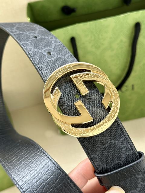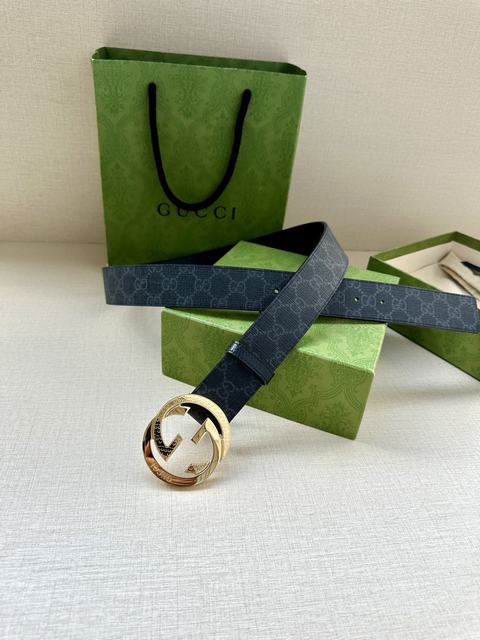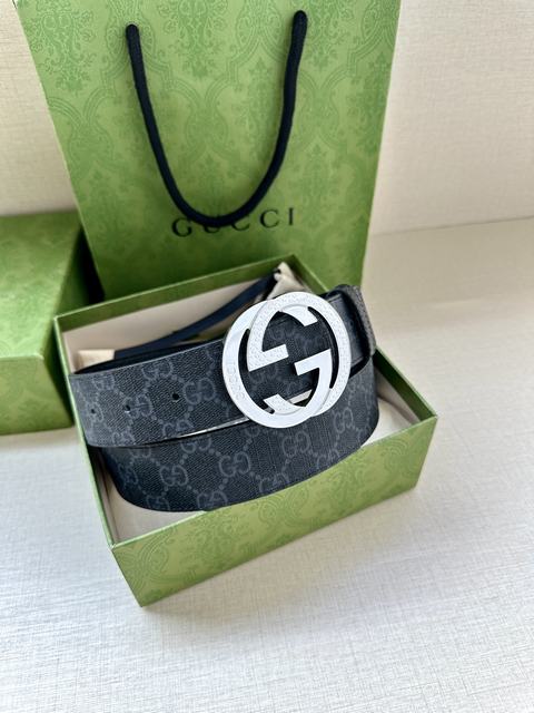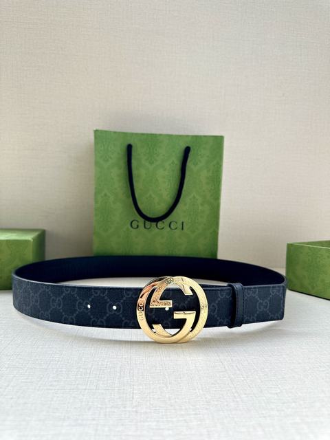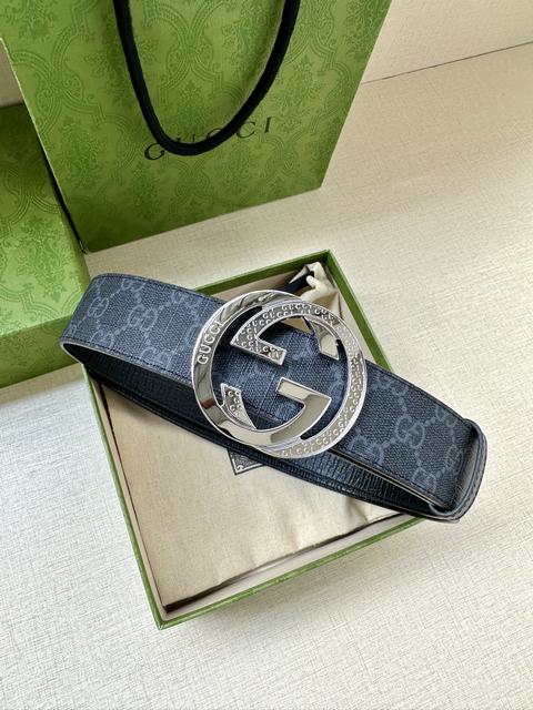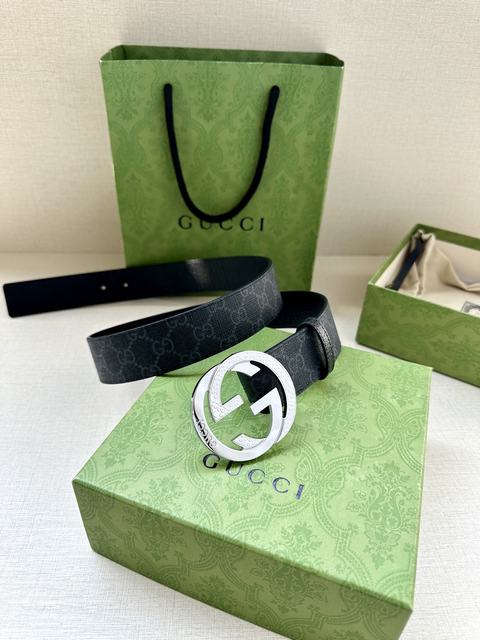 配全套包装 GUCCI 宽度3.8cm 这款宽版腰带饰有双G细节,交织字母图案配件令其更添魅力。这款配饰现已成为Gucci的高辨识度单品,一面采用GG Supreme帆布,另一面采用灰色头层牛皮材质。