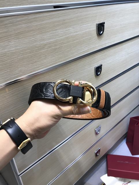 配全套包装  新款 F宽35MM  标志造型皮带,圆柱8字S F铆钉扣,双面进口原版进口压花牛皮配而制成,镀金表面金属制品,品质保证,非市场通货