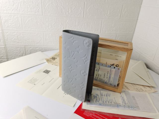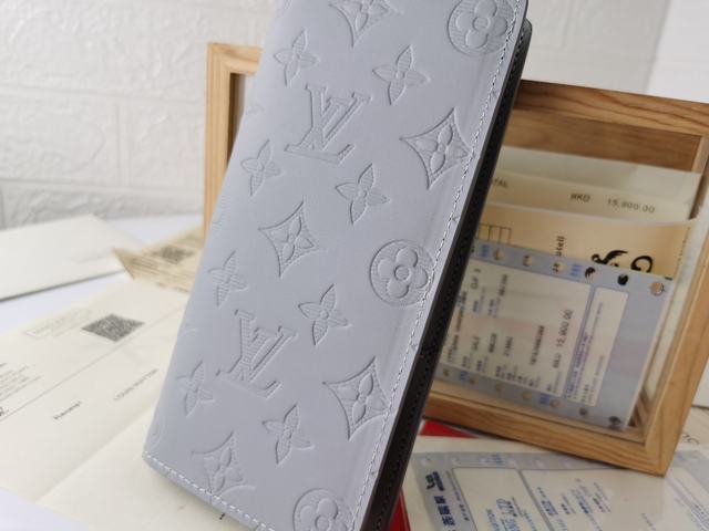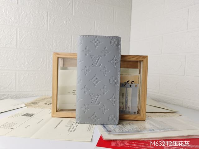 頂級原版💎【實物拍攝 自家背景】M63212壓花灰,,本款 Brazza 錢夾以 Monogram Shadow 皮革舒展硬朗氣息。舒柔牛皮革壓印路易威登標誌性 Monogram 圖案,隔層、零錢袋和卡片夾層可容納紙鈔和票據。62665