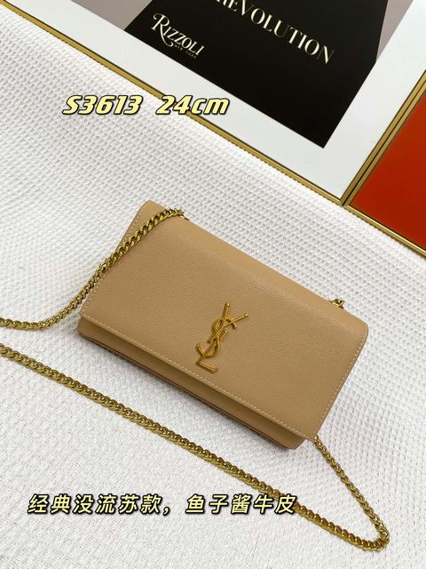 經典沒流蘇款,聖羅蘭 標誌正面翻蓋包,配有馬銜索式鏈條肩帶、牛皮革,磁石按扣封口,內側隔層袋,尺寸24×14.5×5.5cm,s03613