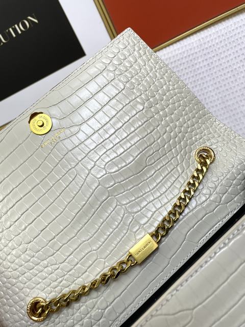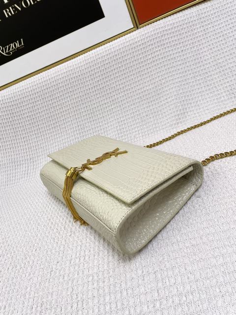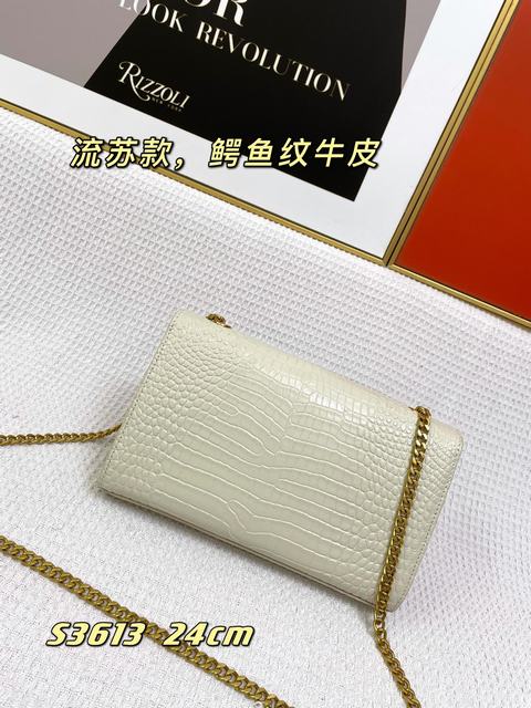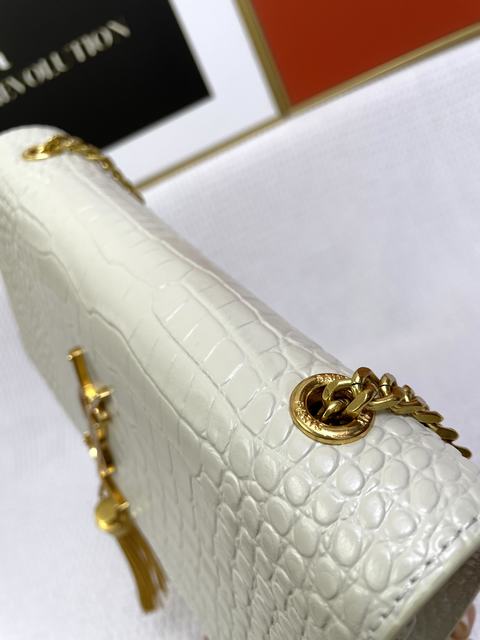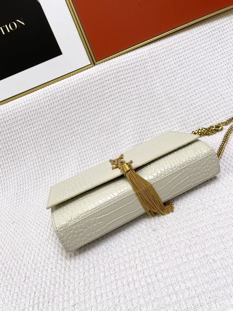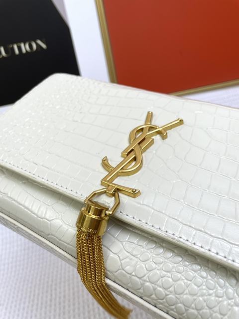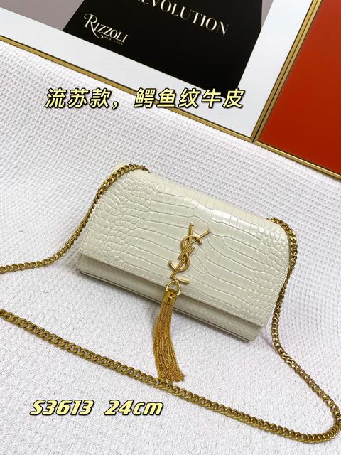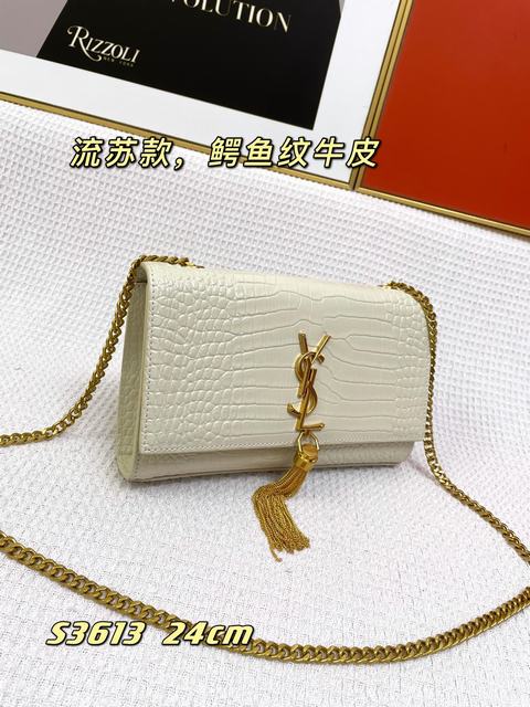 (流蘇款)聖羅蘭 標誌正面翻蓋包,配有馬銜索式鏈條肩帶、牛皮革,磁石按扣封口,內側隔層袋,尺寸24×14.5×5.5cm,s03613