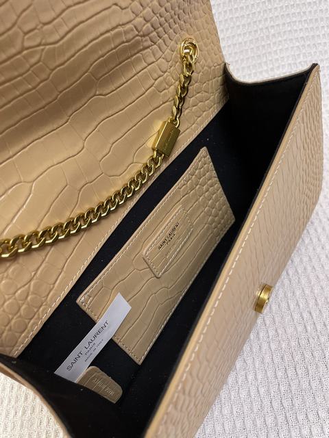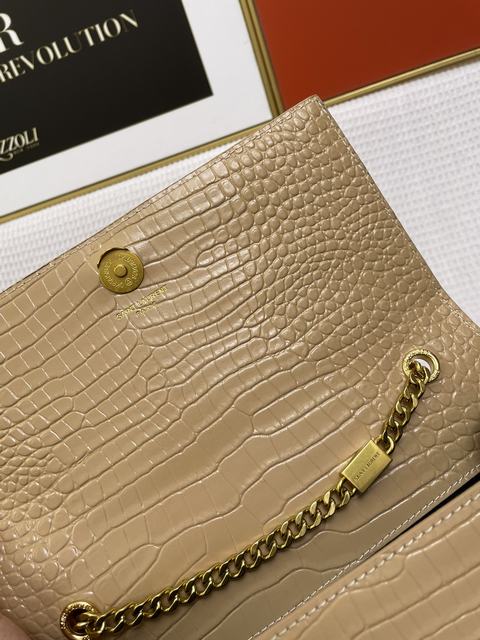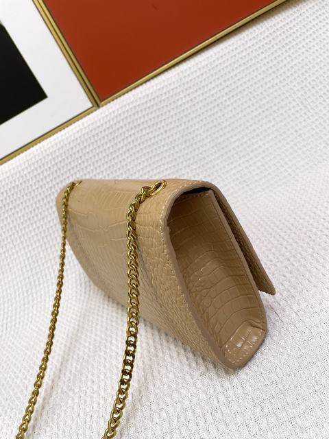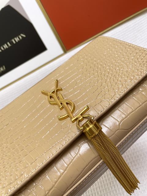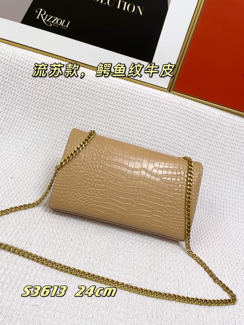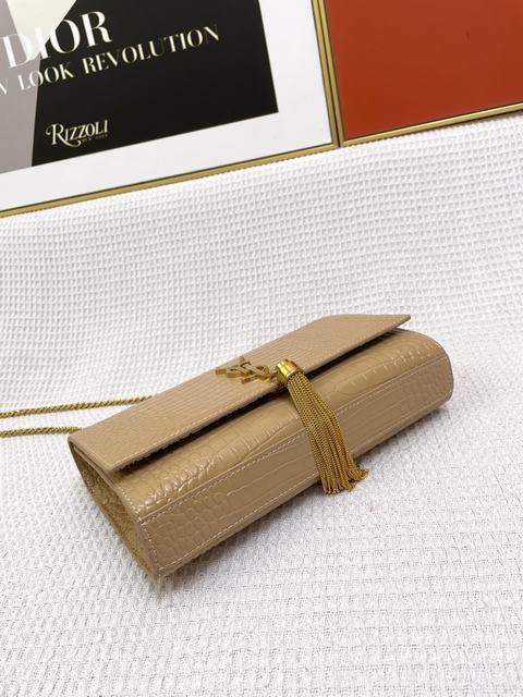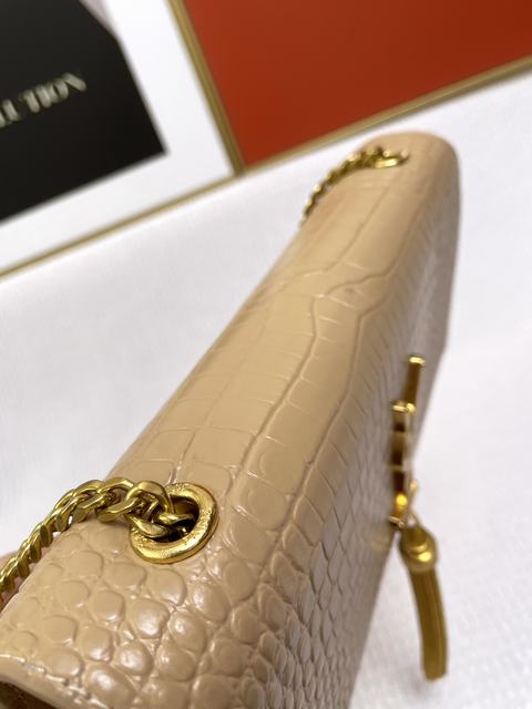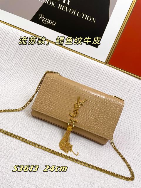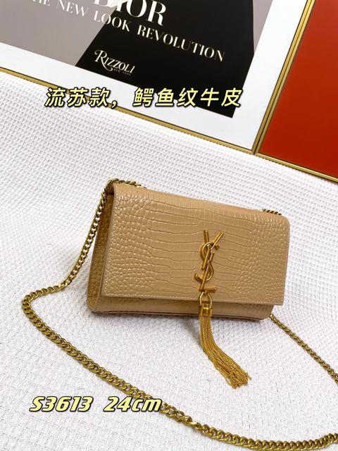 (流蘇款)聖羅蘭 標誌正面翻蓋包,配有馬銜索式鏈條肩帶、牛皮革,磁石按扣封口,內側隔層袋,尺寸24×14.5×5.5cm,s03613