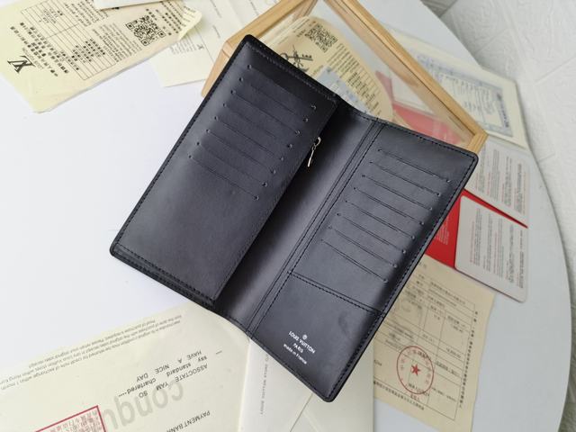 頂級原版💎【實物拍攝 自家背景】M58192黑色 荔枝紋西裝夾 優雅一詞是對 Brazza 的最佳形容,一款既靈活易用又優雅的錢包,可輕易收納入胸前口袋。以極柔軟又耐用的 Taurillon 皮革打造,令這款錢包更添魅力。細節10 x 19 x 2 厘米(長度 x 高度 x 闊度)牛皮鑲飾錢包正面飾以路易威登英文字首壓花鈀飾面黃銅金屬件牛皮襯裡12 個信用卡夾層,1 個裝身份證或名片的夾層1 個大型拉鏈零錢格4 個內貼袋可裝紙幣、證件、票據62665