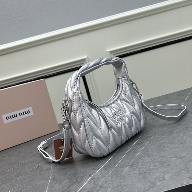 配盒子 MiuMiu 23最新品 MiuWander🔥今年很炸|||采用進口小羊皮經典品牌標誌性Matelasse紋理繡花,復古磨砂五金,利用圓孤的曲線,保留了應有的俏皮感,包型整體硬挺有型,充滿個性,可甜可鹽,容量可光,各大時尚搏主幾乎人手一個!