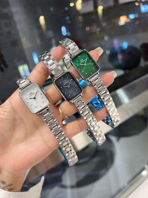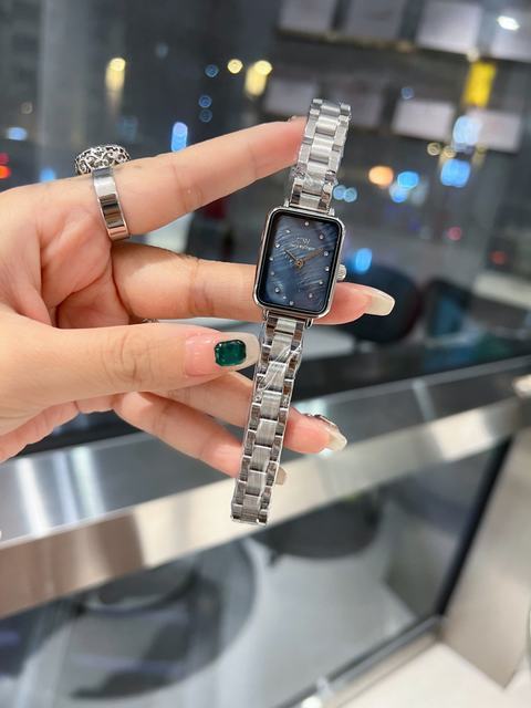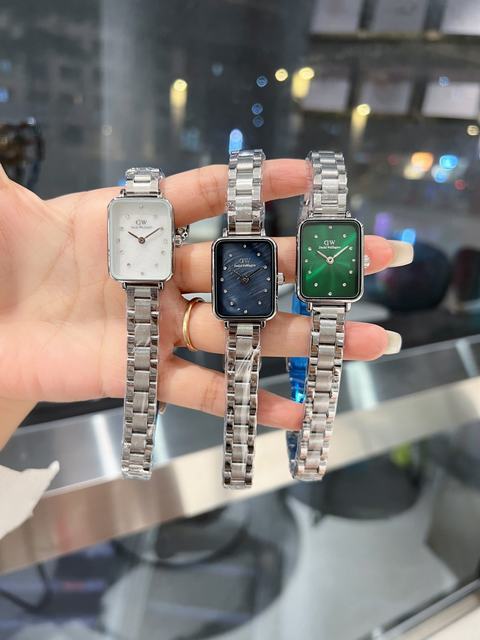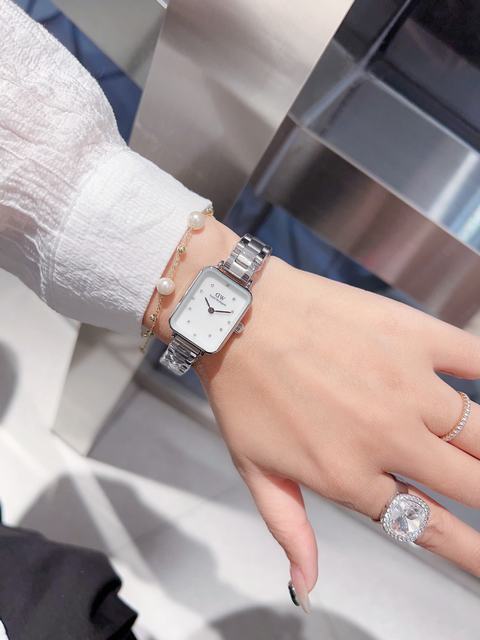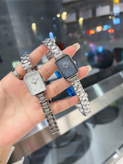 Dw 新品低調奢華女款,鑽面小方表 石英機芯,合金材質與白金電鍍,整體質感和氣質都變了,精致感upup!搭配小巧殼形,上手效果完美!尺寸26mm雙按扣/牛皮表帶/網帶  號碼08230