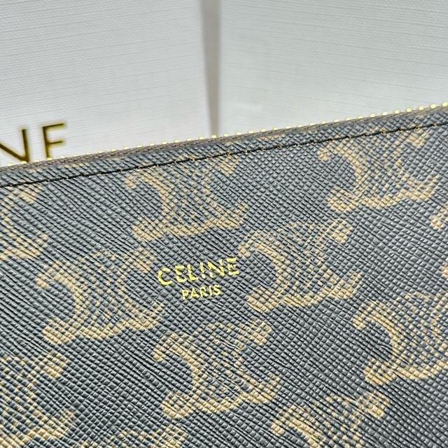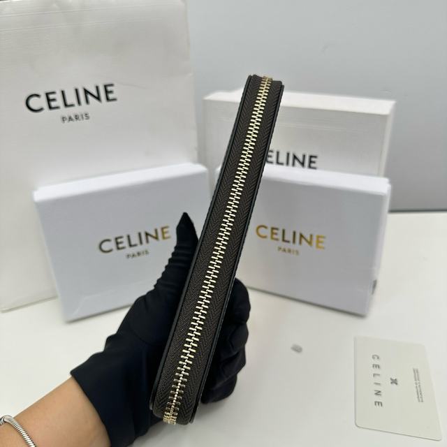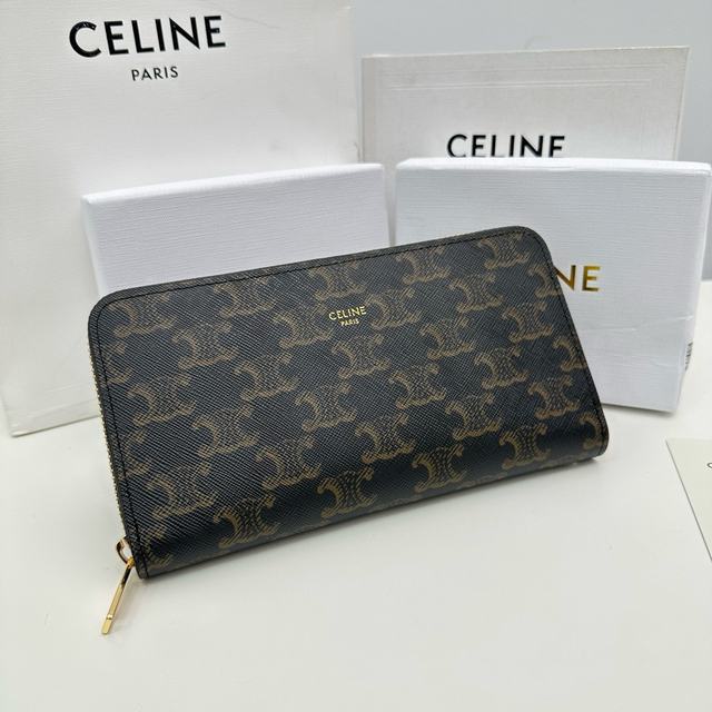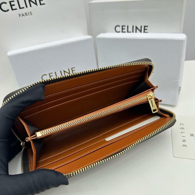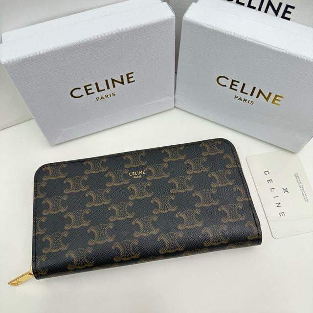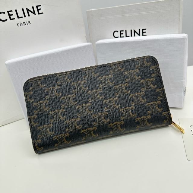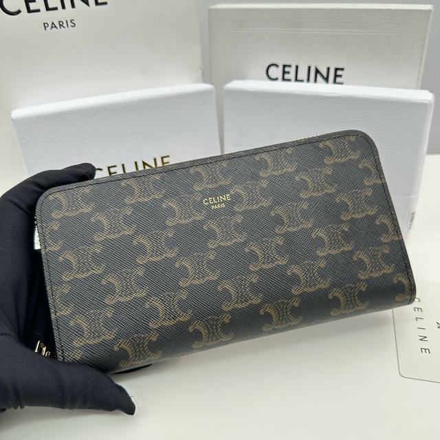 品牌:Celine A14🎀尺寸: 19*10.5*3.5🎀说明: Celine 专柜同步,TRIOMPHE CUIR大号拉链钱夹 ,经典老花配小牛皮衬里,拉链封口,一个拉链硬币袋,12个信用卡槽,两个角撑隔层,两个扁平口袋