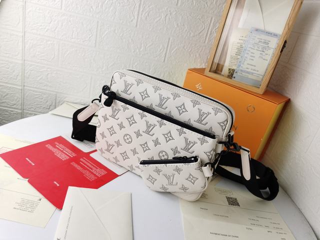 【實物拍攝 自家背景】新款郵差包SPRINTER 信使包Sprinter 信使包以 Monogram 壓紋圖案巧襯 Monogram Shadow ,點綴啞光金屬件。全皮壓花男士二件套挎包橫款挎包外袋、拉鏈後袋及內貼袋令隨行所需井然有序。27.0x 4.5x 18.5 cm。69443號碼h051250