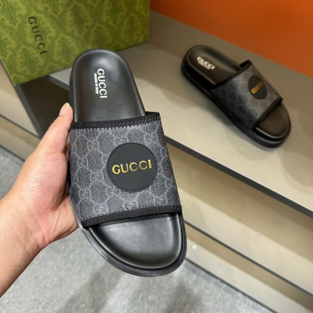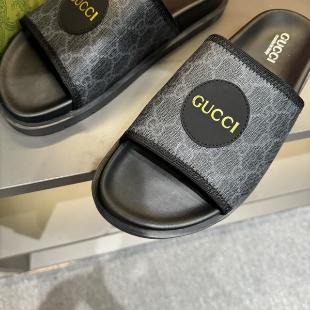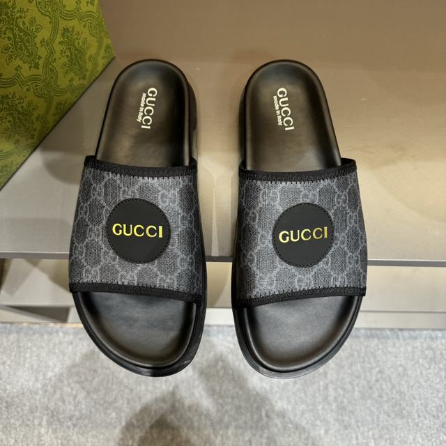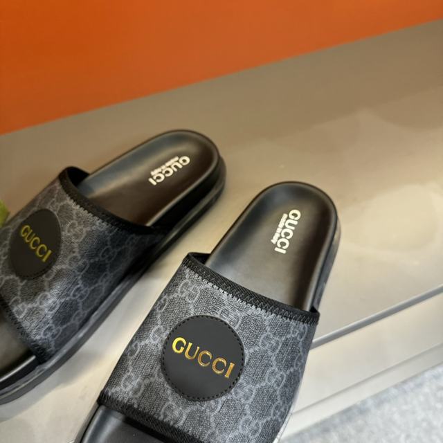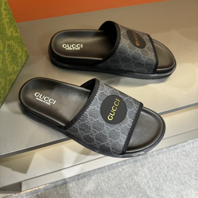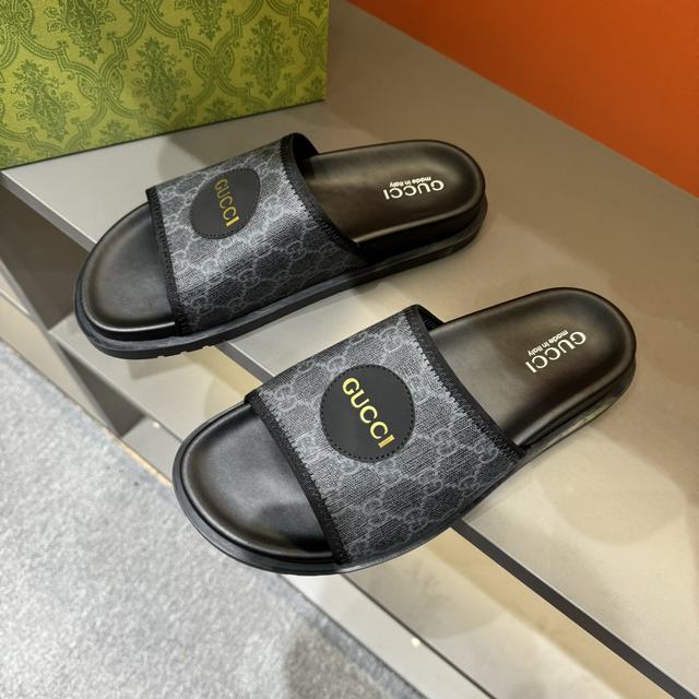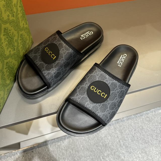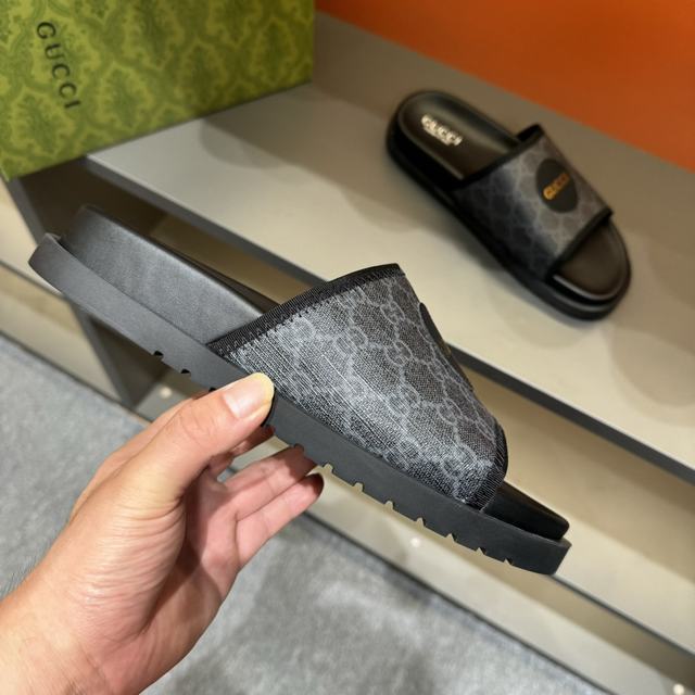 码数38-46 GG家高端男士夏季拖鞋, 经典老花系列,一字带宽松设计,别致的色彩拼接效果,个性鲜明,时尚潮流穿搭必备款式,轻盈舒适。轻质韧性橡胶内底,微型凸纹发泡外底,超级舒适脚感!