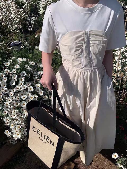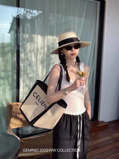 CELINE 新一季🌱Tote帆布拼皮手提购物袋