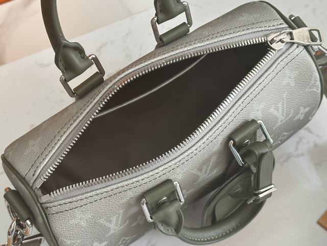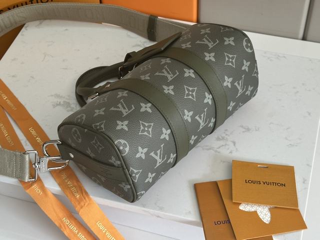 顶级原单 M11591 本款Keepal Bandouliere Ks手袋取材Monogram Gradient 涂层帆布,巧妙描摹全帽Monogram图案逐渐消散之景。顶部手柄、侧带和名牌完善细节,可拆卸并调节的肩带实现肩背或斜挎。尺寸:25 × 15 × 11 cm 號碼004600