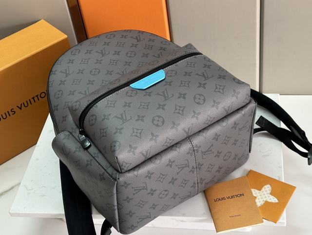 顶级原单✨M11641蓝色/银花 双肩包系列 DISCOVERY 小号双肩包 本款 Discovery Gx小号双肩包选用深邃 Monogram Eclipse Reverse 帆布,再为皮革标签、拉链边缘和顶部手柄浸染明丽色调。拉链前袋和开放式侧袋完善细节,成就日常背携佳选。尺寸:29 × 38×20厘米