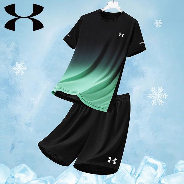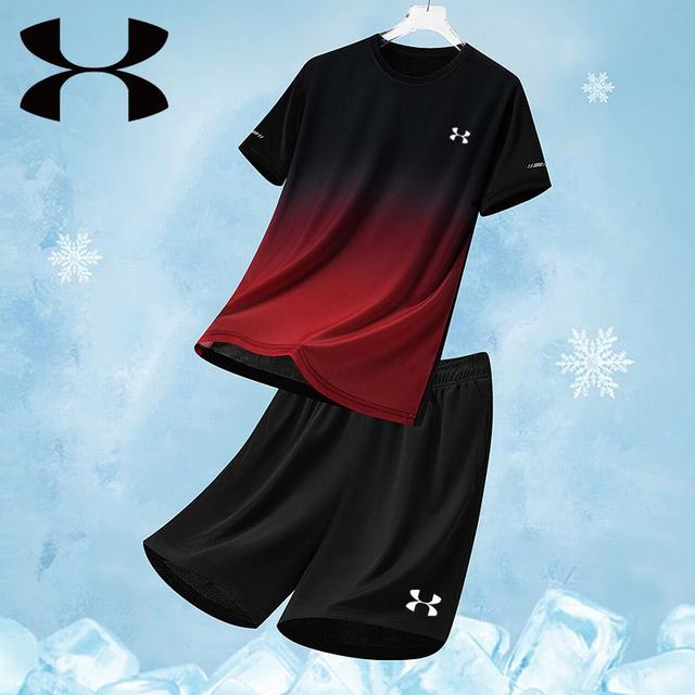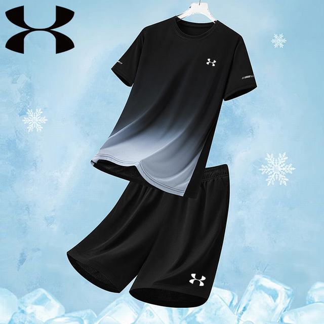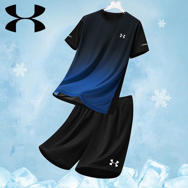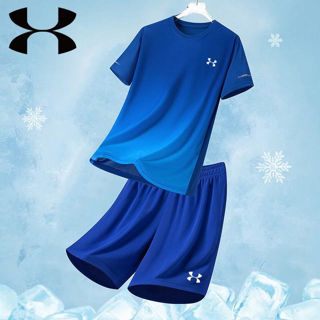 夏季运动休闲套装俩件套短裤短袖跑步健身羽毛球冰丝弹力速干