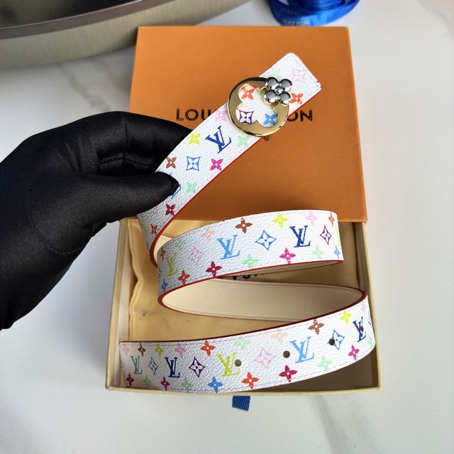 配全套包装 寬度3cm 聯名小花系列 全新風格定制帆布面料襯托細膩的進口彩色小牛皮 搭配新款字母搭扣 經典百搭款
