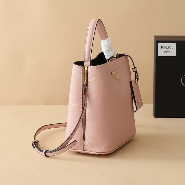 新款♥️大号💰390 ,PRADA DOUBLE BUCKET 高级鳄鱼纹拼色水桶包 🏆(普拉达)20FW 专柜美腻新品 原版手掌纹牛皮🖤超洋气咯 最新款可是俘获了不少少女的芳心 同时也是全球达人的百搭单品!超赞!✔️可谓是人人都想拥有①只 新品必备款 妹子抓紧入手这只 推荐自留 手提/斜挎/单肩  🔥🔥时尚精/洋气女神街拍首选 ✔️