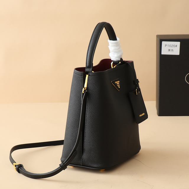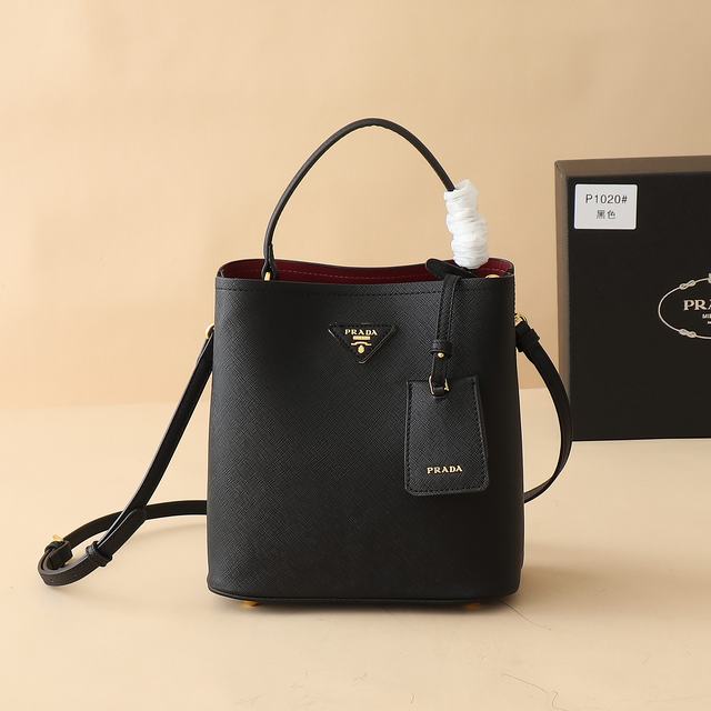 新款♥️大号💰390 ,PRADA DOUBLE BUCKET 高级鳄鱼纹拼色水桶包 🏆(普拉达)20FW 专柜美腻新品 原版手掌纹牛皮🖤超洋气咯 最新款可是俘获了不少少女的芳心 同时也是全球达人的百搭单品!超赞!✔️可谓是人人都想拥有①只 新品必备款 妹子抓紧入手这只 推荐自留 手提/斜挎/单肩 🔥🔥时尚精/洋气女神街拍首选 ✔️