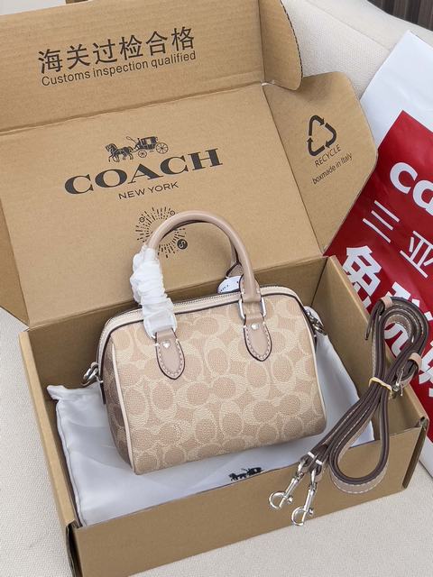 《配图片包装》Coach蔻驰2025新款mini女包,PVC防水面料配牛皮迷你手提斜挎小包 波士顿包,ROWAN经典枕头包 老花logo拼接,肩带可拆 斜挎手拎都可,内置多功能袋,拉链开合,配色都是很适合四季的颜色~小巧可爱萌妹纸的最爱😘