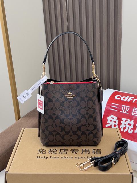 《配图片包装》》 蔻驰最新款Mollie系列水桶包小号,定制PVC老花料配牛皮材质,质感超好,做工精致,配有可拆卸长短两条肩带,可手提可斜挎,包包中间还有拉链隔层,容纳性 私密性 都很好,包身扁平上身更加服帖,火热款简单不花俏,百搭唯美能装容量大,自留款!