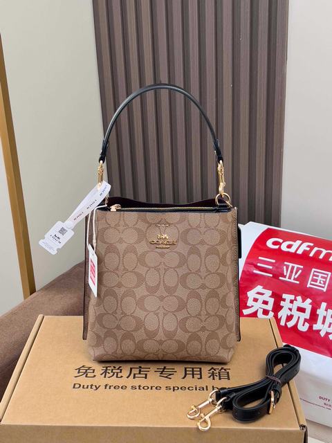 《配图片包装》》 蔻驰最新款Mollie系列水桶包小号,定制PVC老花料配牛皮材质,质感超好,做工精致,配有可拆卸长短两条肩带,可手提可斜挎,包包中间还有拉链隔层,容纳性 私密性 都很好,包身扁平上身更加服帖,火热款简单不花俏,百搭唯美能装容量大,自留款!