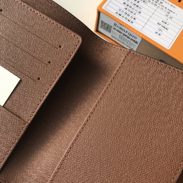 国庆节🌹特价优惠P75💰M60181钻石纹这款旅行证件套设有多个隔层,可放名片和证件护照套将使您的旅程更时尚惬意奢华的压纹小牛皮内衬和多个内部隔层造就其经典品质护照套以优雅的风格为护照提供保护size9.5*2*14cm,号码0375