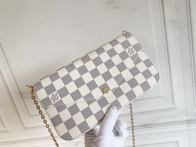 # 独家实拍💎FELICIE 手袋 M61276 Felicie手袋优雅华贵,内含两个可脱卸口袋,是携带整理您的日常用品的时尚之选。它不仅仅是款钱夹,除去金色链条后,它还可以用作迷人的手包或小型手袋。尺寸21*11*2cm,🍒实用性百分之100👌可斜挎手拿肩背,可随意出入专柜海关😍