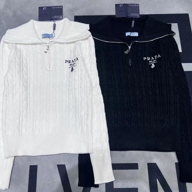 2025慵懒针织衫麻花翻领立领秋冬毛衣新款刺绣拉链上衣